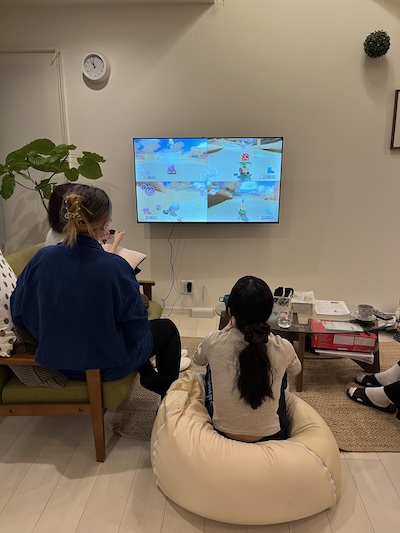 夜も遅くから、リビングでみんなでゲーム大会が始まり、楽しい笑い声に包まれていました